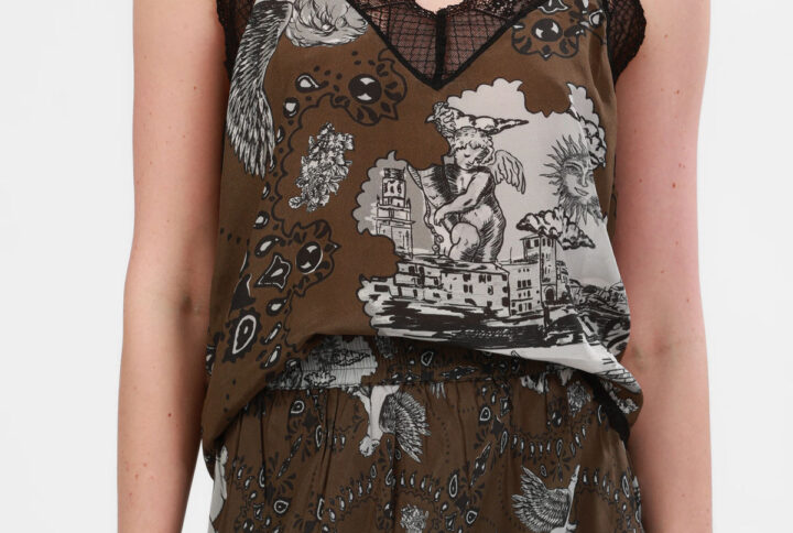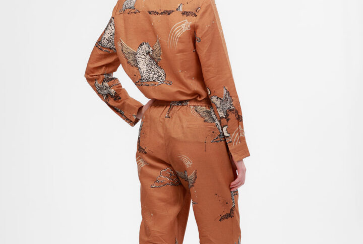 Pantalón de corte relajado con cintura elástica y bolsillos laterales, en el estampado Astrology inspirado en el cosmos: su inmensidad, animales míticos y amor eterno.