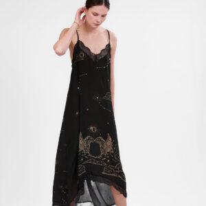 Diseño minimalista con acabado liso y cuello cerrado, ideal para un look pulido y versátil. El largo sobre la rodilla y el corte limpio lo convierten en una pieza atemporal que puede usarse tanto de día como de noche.